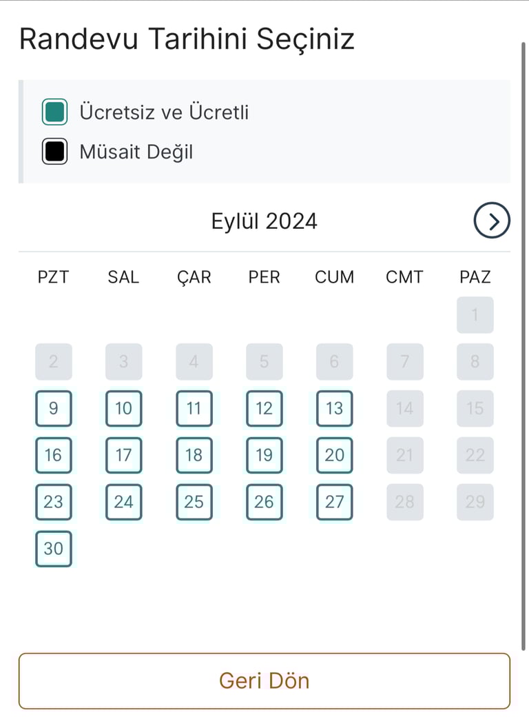 En yakın randevu tarihi için bizimle iletişime geçin.